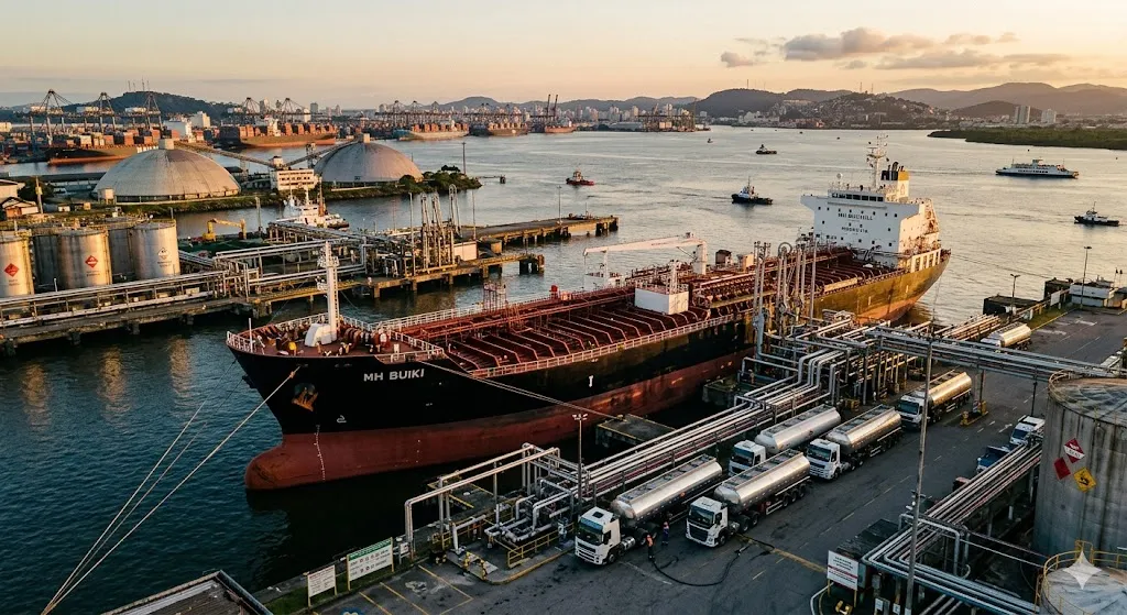 Alerta de Desabastecimento: Porto de Santos fura fila de atracação para garantir gasolina após tensão no Oriente Médio